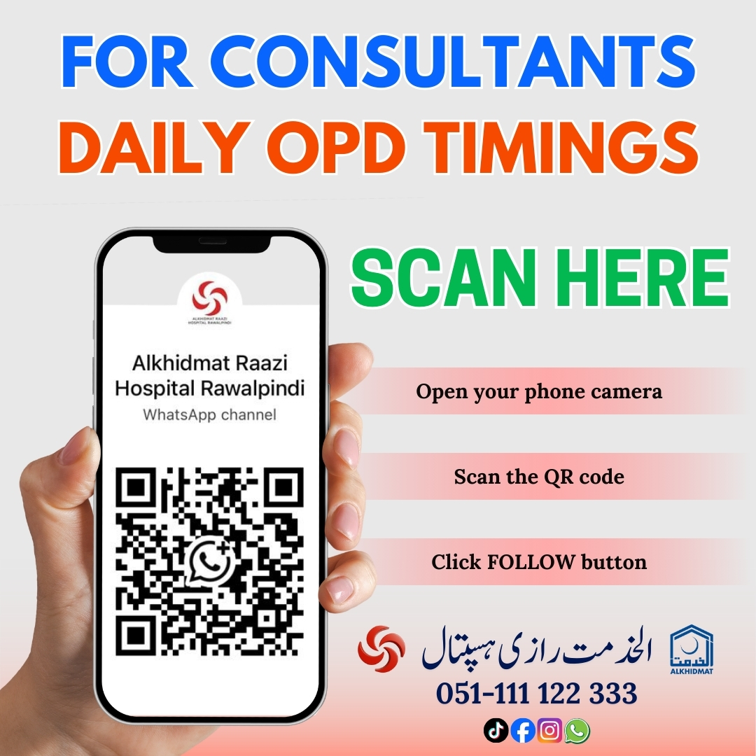 Established in 2006, Alkhidmat Raazi Hospital Rawalpindi is one of the 57 healthcare facilities operating under Alkhidmat Foundation Pakistan, dedicated to providing quality healthcare at not-for-profit cost. The hospital serves the populations of Rawalpindi, Islamabad, and surrounding areas, ensuring equitable access to dignified medical care for all.